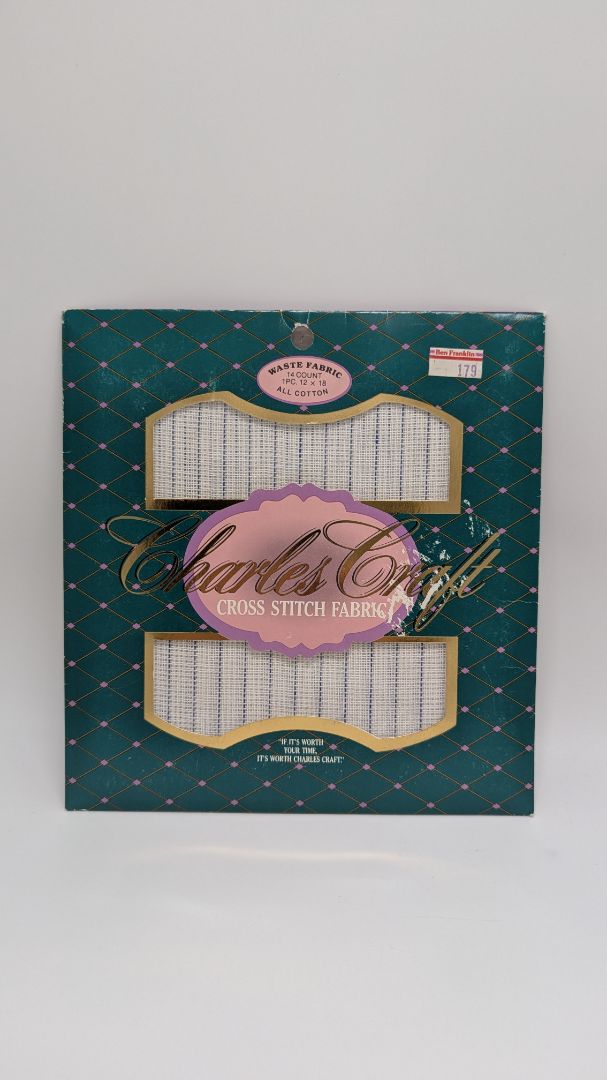 Charles Craft White/Blue Cotton 12x18" Cross-Stitch Fabric. New in packaging.