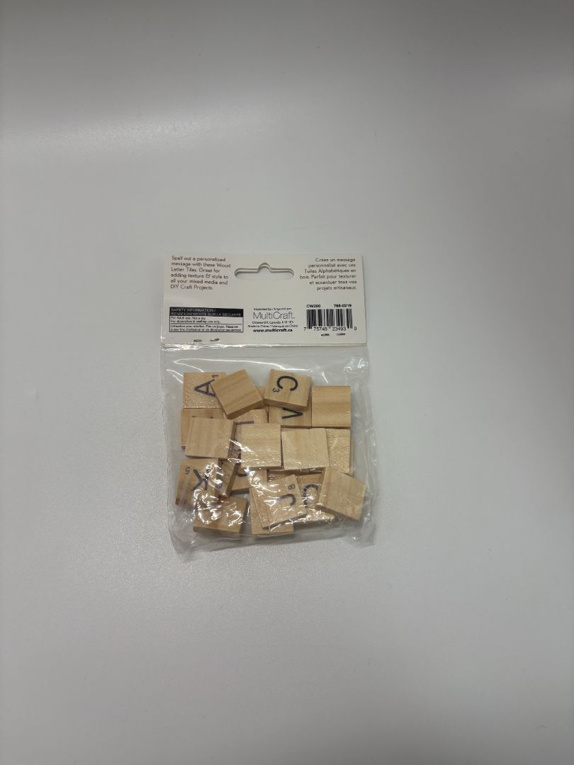 Craft Medley Natural Wood Letter Tiles (26PC). New with tags. It includes a total of 26 letters/pieces (the full alphabet).