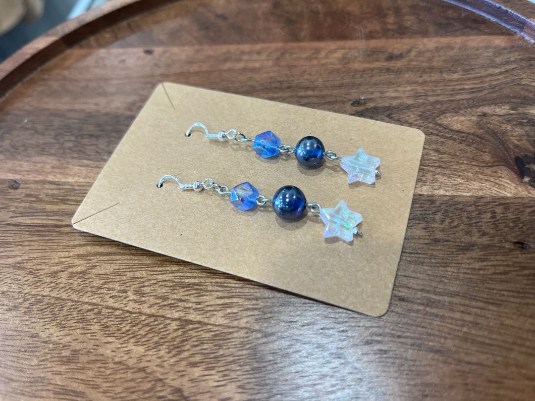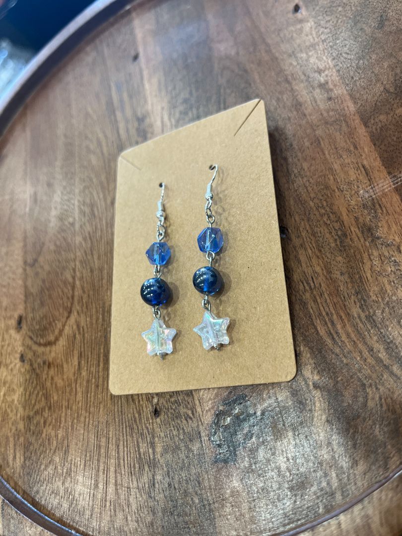 Dark Blue & Star Dangle Beaded Wire Loop Earrings