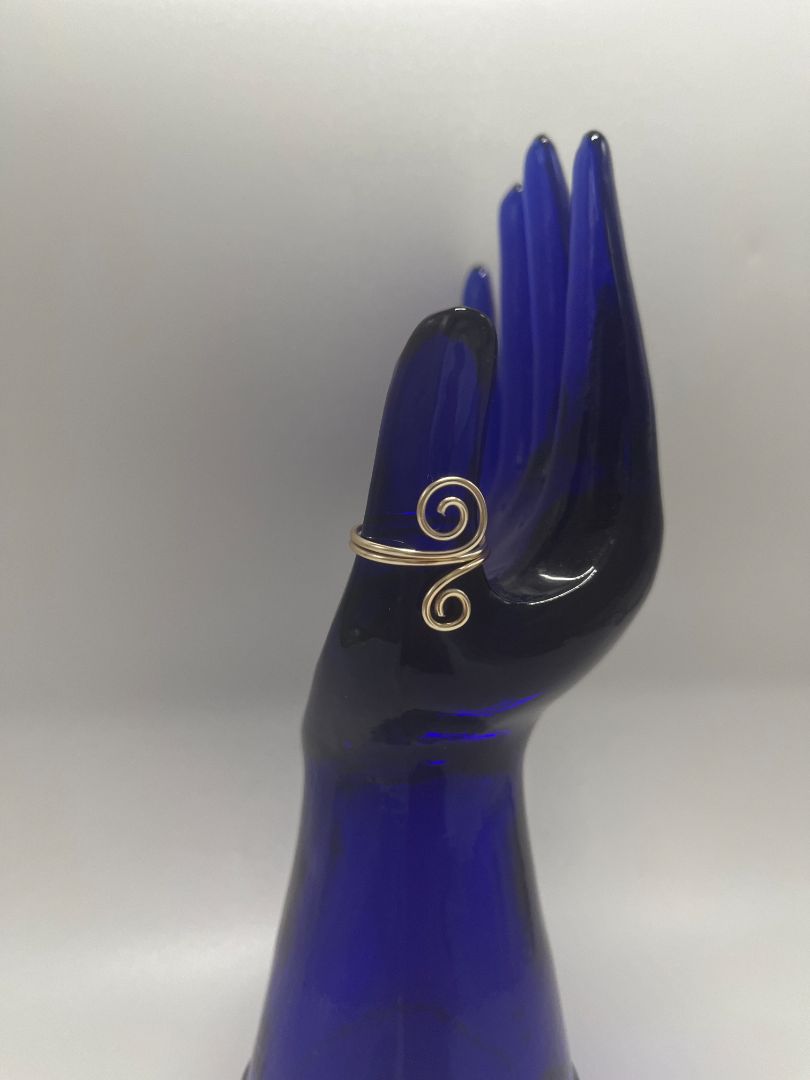 Size 9 Double Spiral Gold Metal Wire ring - medium hue gold; ability to be adjusted for the perfect fit.