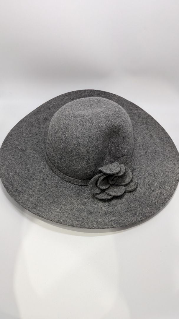 Grey 100% Wool Felt Wide-Brim Flower Hat. Very gently used.
