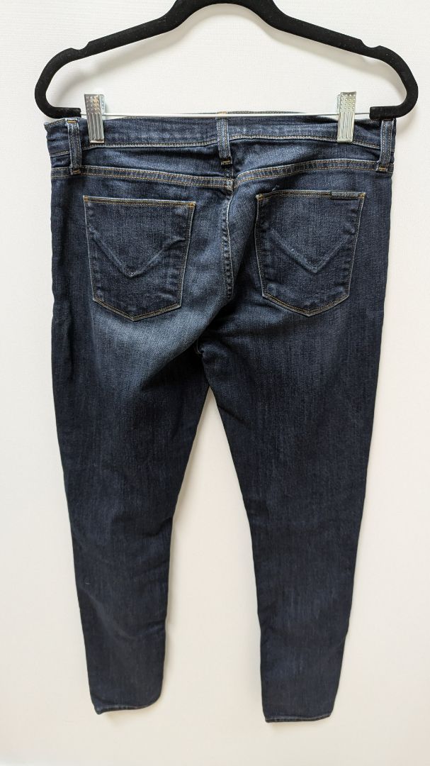 Hudson Dark Wash Krista Super Skinny Jeans. Size 28. Very gently used, with some minor stretch and wear. It has a zipper and button closure, 5 pockets, and a skinny leg style.