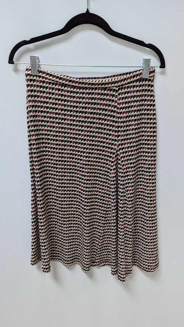 IDEOLOGY Maroon/Black Printed Knit Flared Skirt. Size Medium. Very gently used. It is stretchy, with an elastic waist and a flared style.