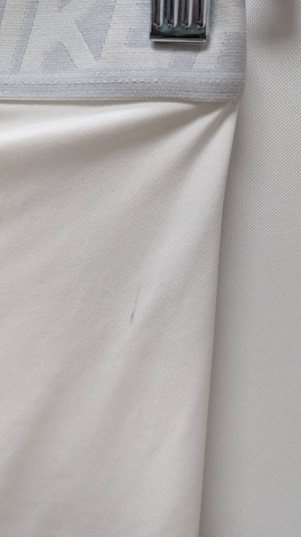 Nike Dri-Fit White Men's 3/4 Active Leggings. Size Large. Gently used, with some minor staining, but in good condition. It has an elastic waistband.