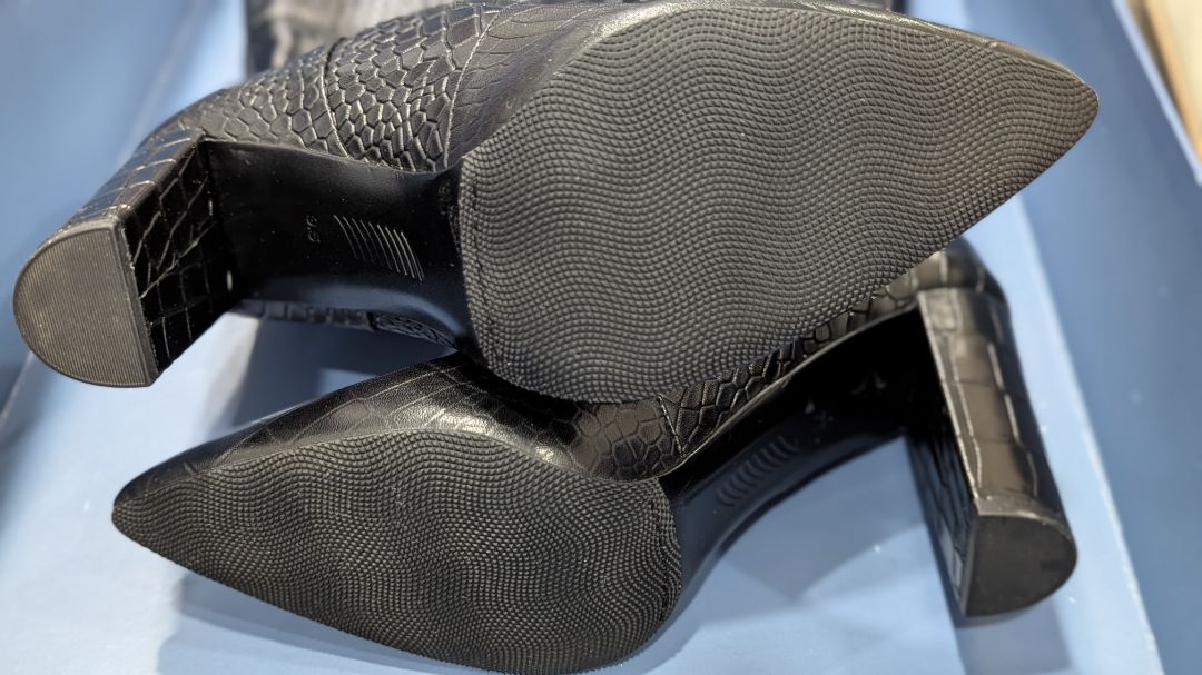 PAIGE Black Carmen Crocodile Heeled Boots. Size 9.5. New in box; box is slightly damaged. They have a pull-on style (no zippers) and heels.