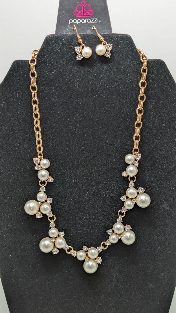 Paparazzi Gold/Faux Pearl Cluster Necklace Set