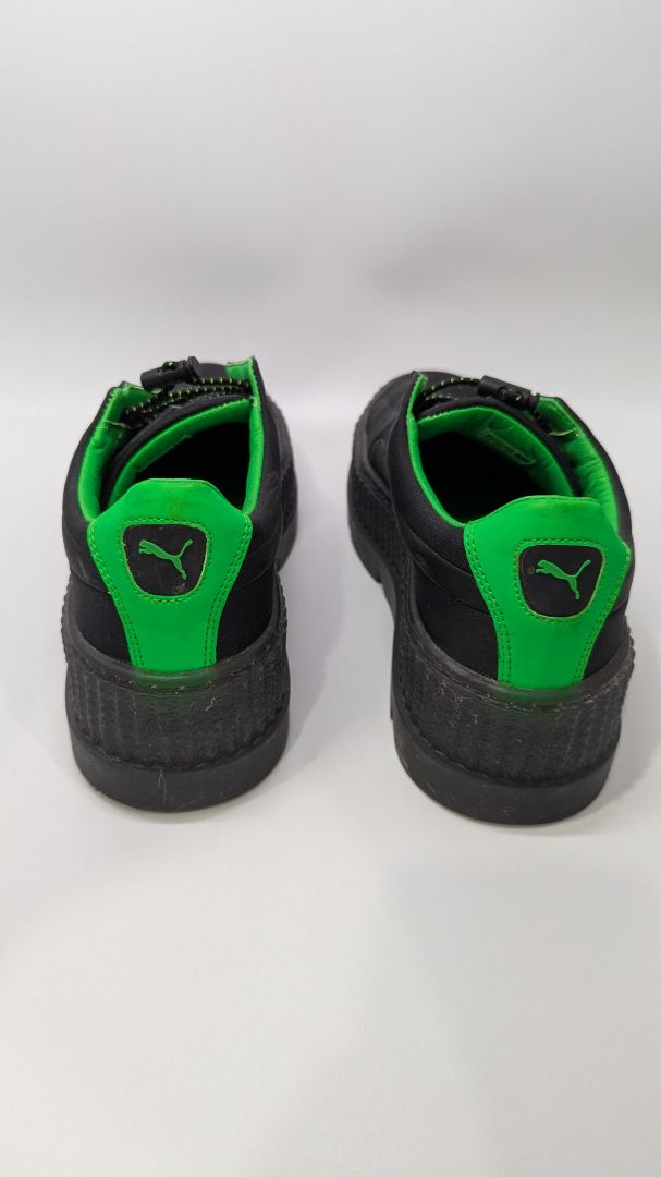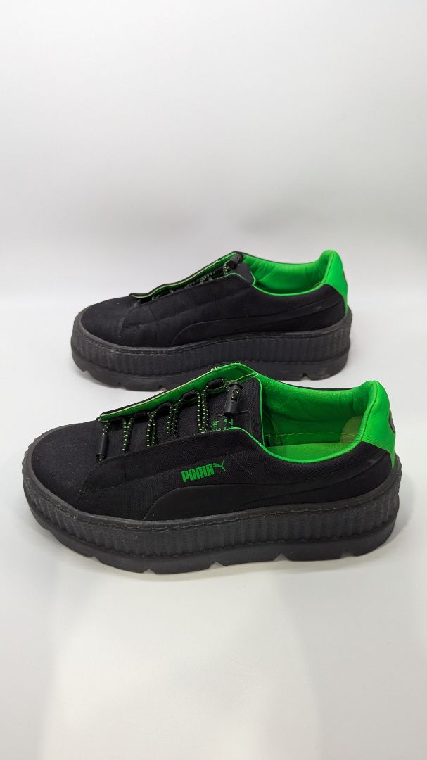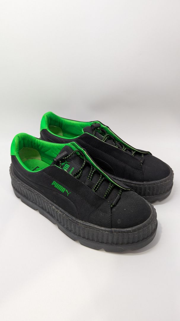 Puma x Fenty Rihanna Black/Green Creeper Sneaker. Size 8. Gently used, with some wear to the insides of the shoes.