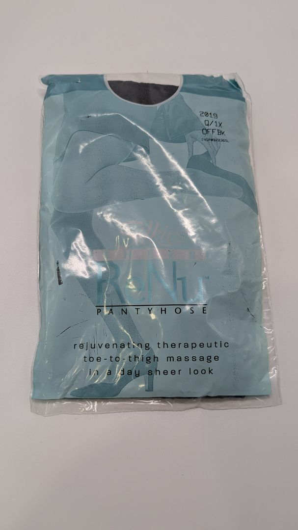 ReNu x Silkies Off-Black Sheer Rejuvenating Pantyhose Tights. Size Q/1X. New with tags. It features "rejuvenating therapeutic toe-to-thigh massage in a day sheer look." Super-sheer style.