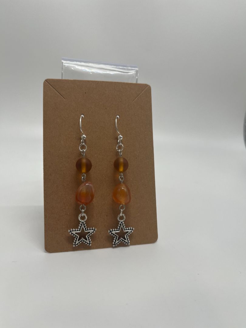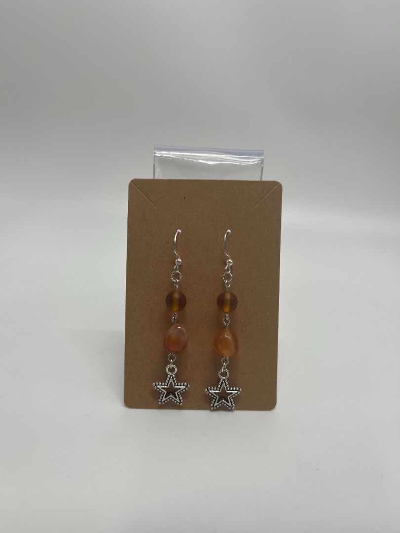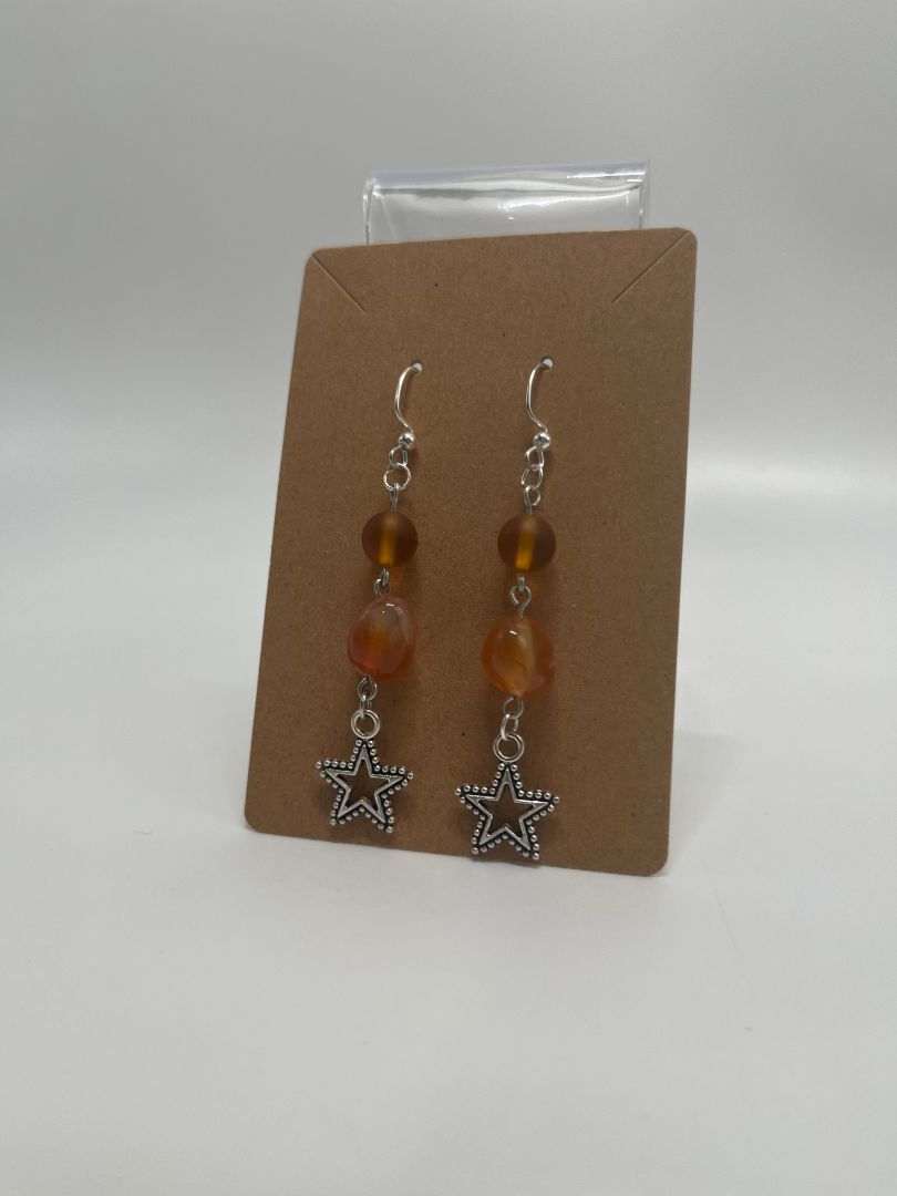 Hand-crafted from genuine red (fire) agate and glass beads with silver accents and star charms.