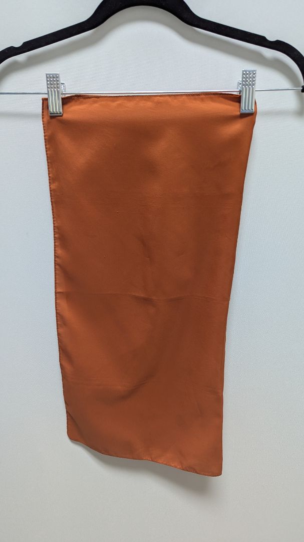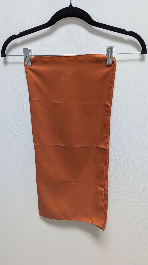 Rust Orange Square Scarf. Gently used, with some minor fraying/spotting. Overall good condition.