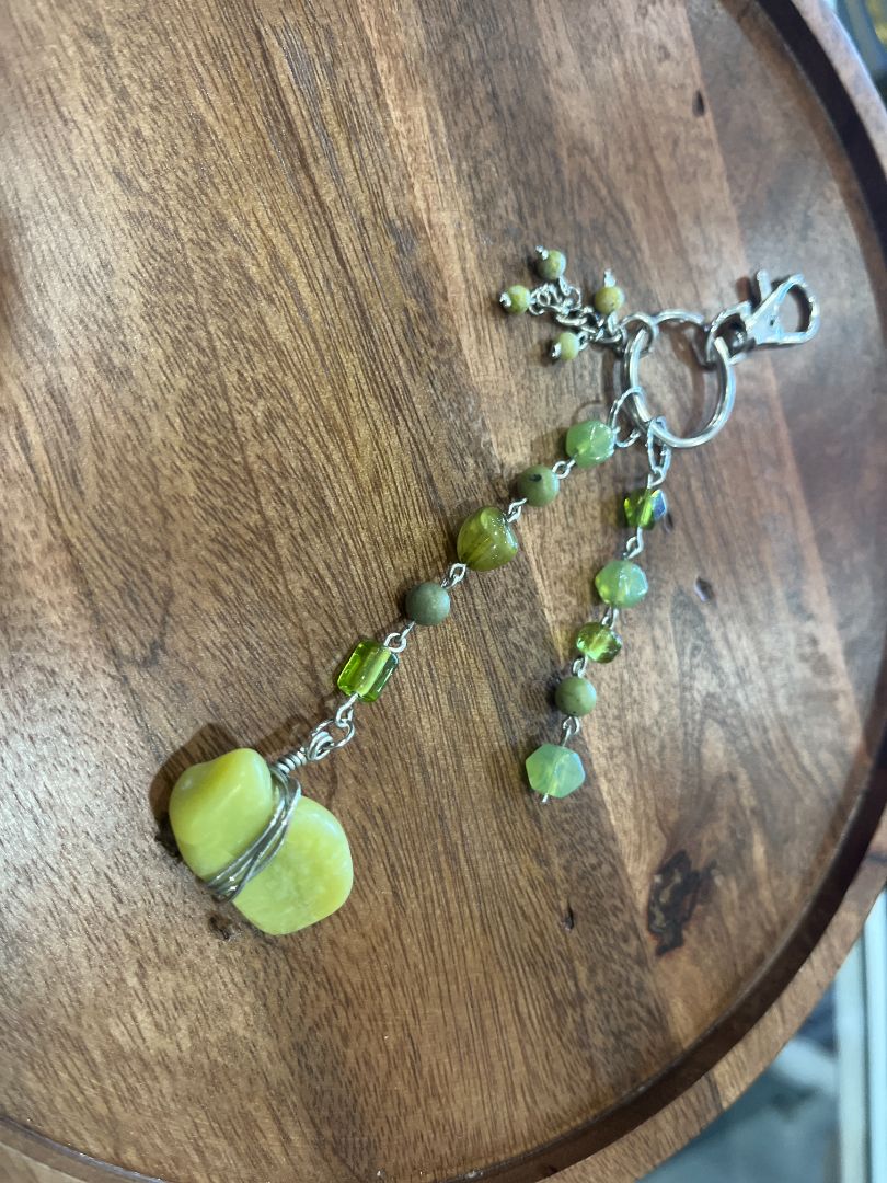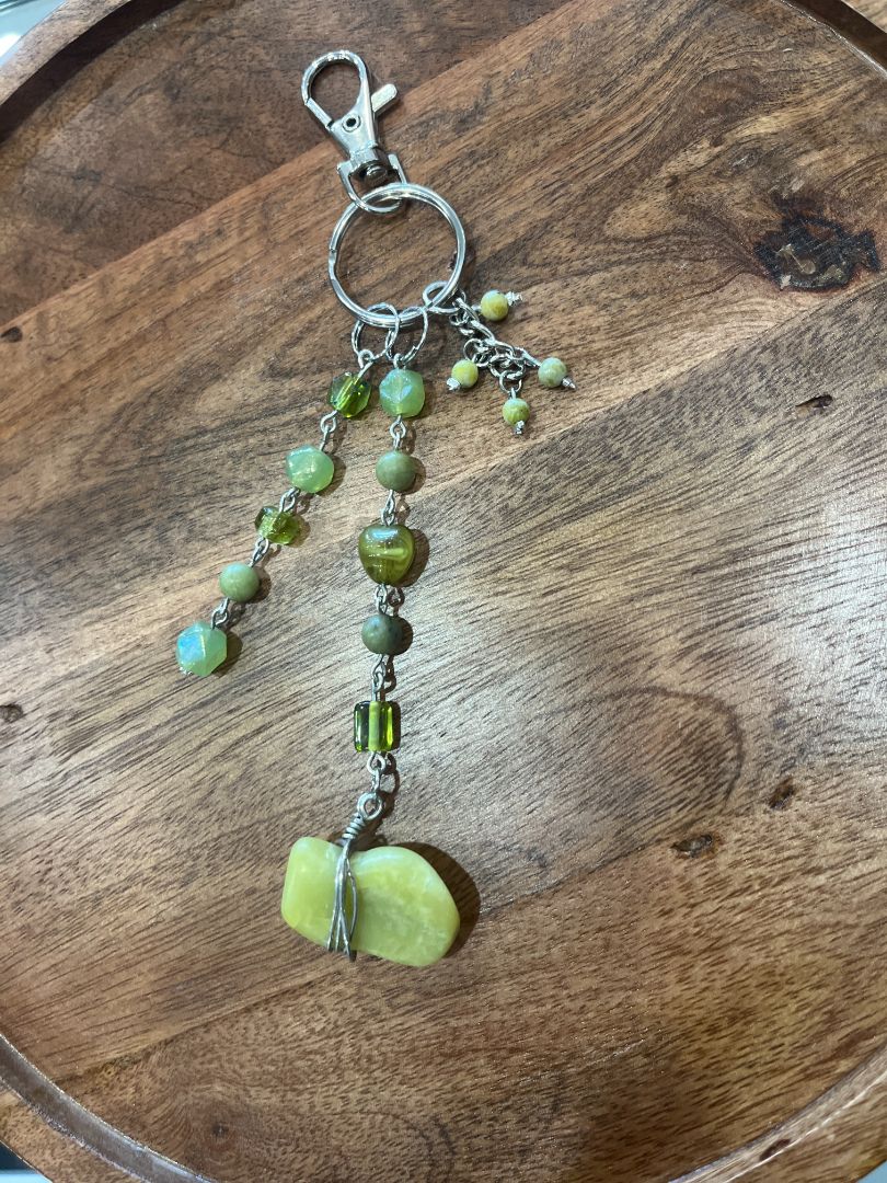 Serpentine Green Dangle Beaded Wire Loop Bag Charm/Keychain