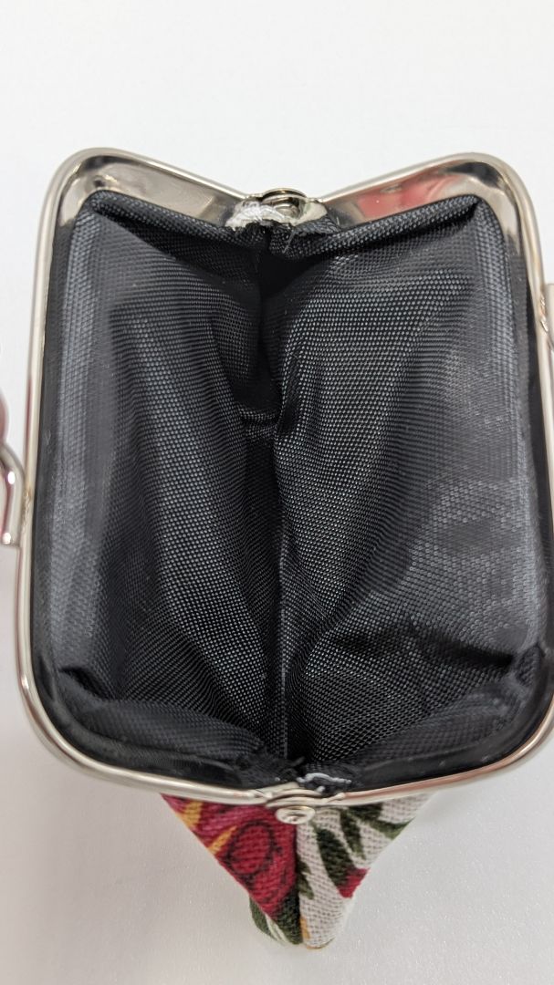 SilTriangle White Floral Coin Purse Pouch. New without tags. It has a silver metal top clasp and a fabric body.