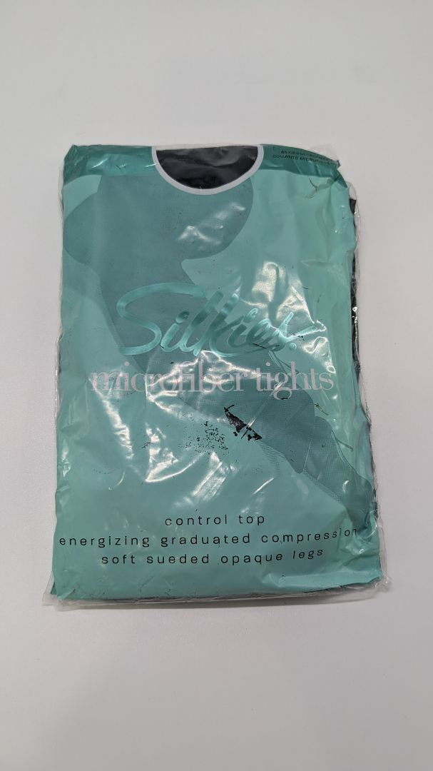 Silkies Dark Navy Control-Top Microfiber Pantyhose Tights. Size XXL. New with tags. It features a "control top," energizing graduated compression, and soft-sueded opaque legs.