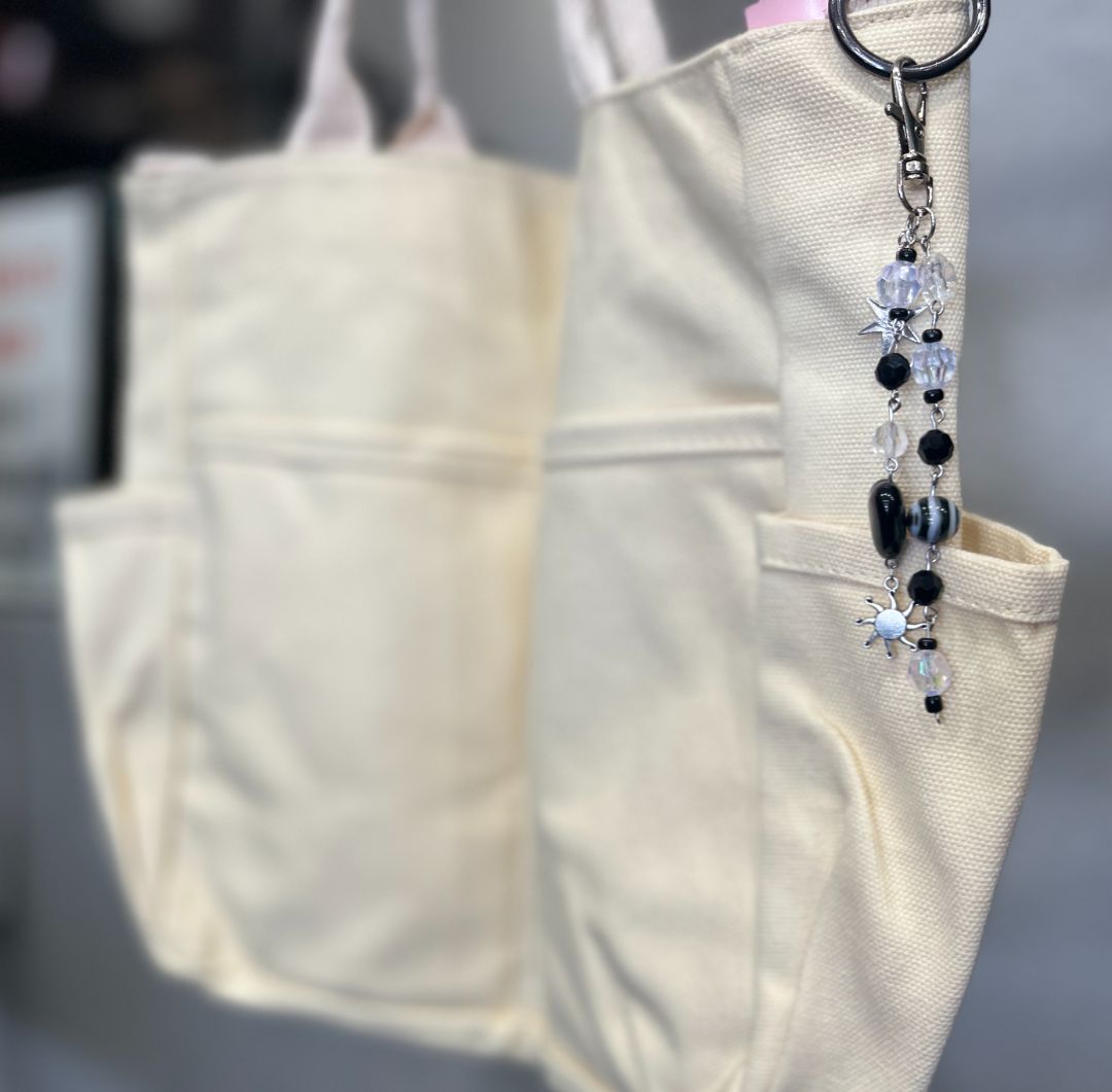 Black & White/Clear beaded keychain/bag charm, Hand-crafted by Recycled Threads, ensuring unparalleled quality and attention to detail.
