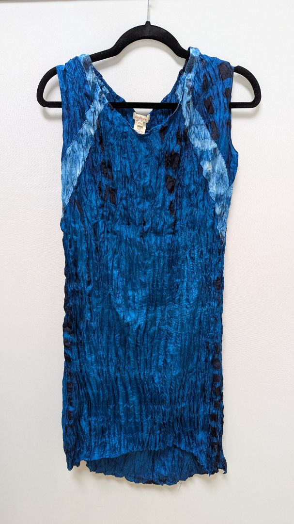 sundance Dark Blue/Black Ombre Silk Crepe Dress. Size XSmall. Gently used. It is made of a thin crepe-y material and it is sleeveless.