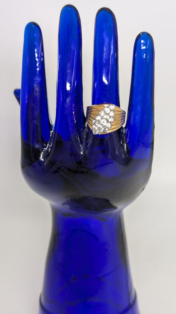 Thick Gold Ring with White Gemstone Cluster. Ring size 6. Gently used, with some slight tarnishing, but in great vintage condition.