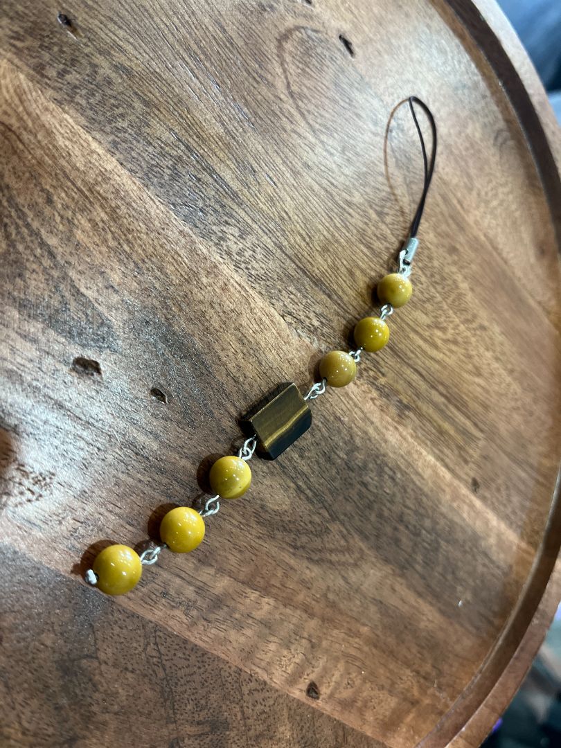 Yellow Jasper & Tiger's Eye Grounding Beaded Dangle Phone Charm